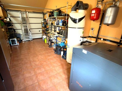 * PLANTA PRINCIPAL: Recibidor, sala de estar con dos chimeneas, una de leña y otra eléctrica que dispone tanto de aire caliente como frío. La sala se abre a un porche semicerrado abierto al jardín y la piscina; que por su orientación permite su utilización durante todo el año. Completamos la planta con una habitación y un baño completo, así como con la cocina con acceso al garaje o trastero cerrado.