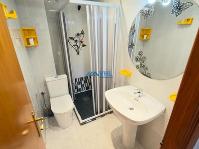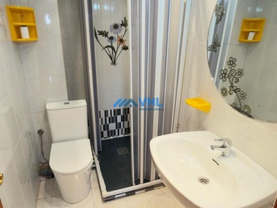 - Un baño con plato de ducha y una despensa.